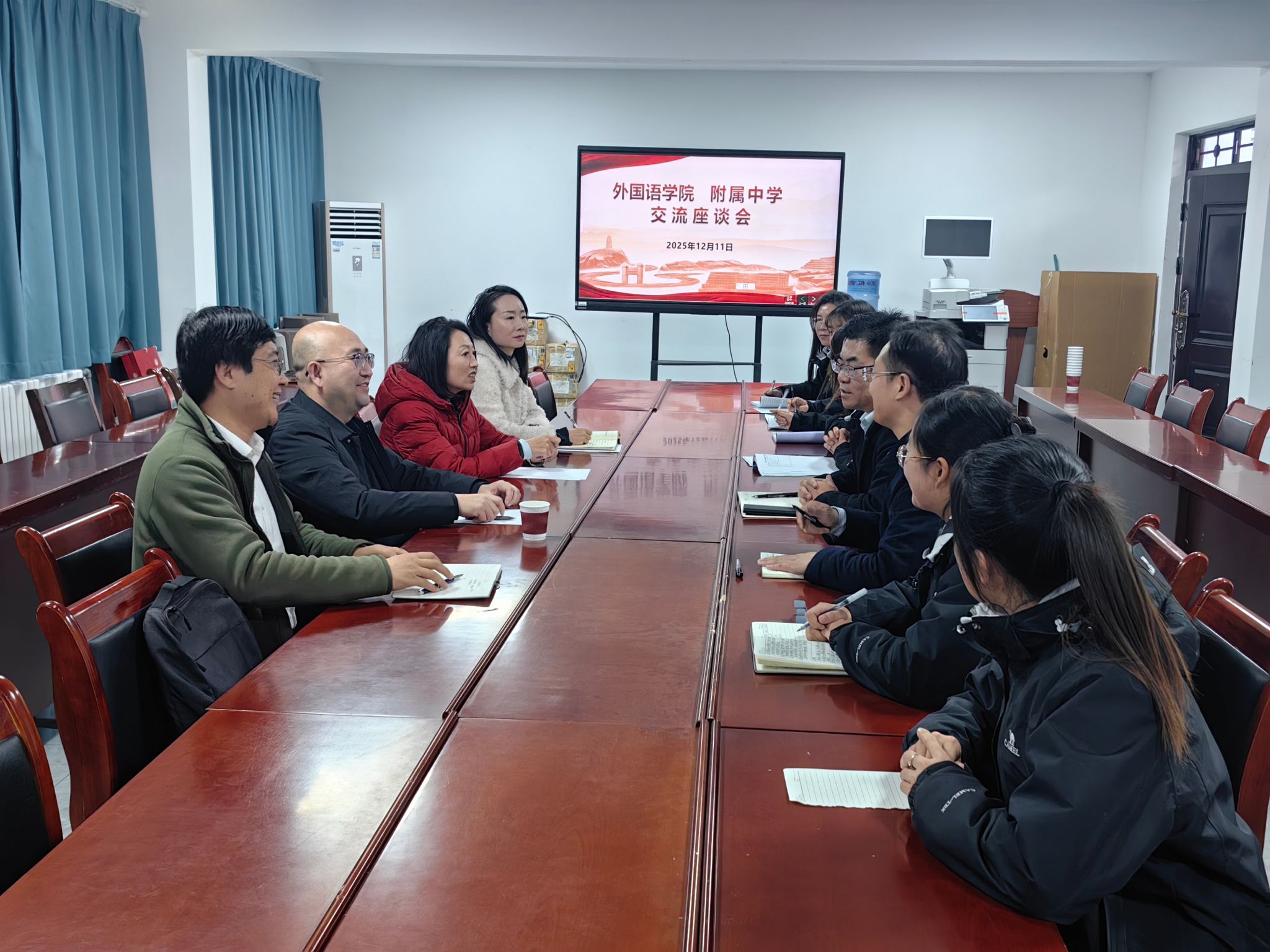 随后,梁艳、常琅、王会刚、雷琨结合外国语学院的发展特色与办学成果,从党建引领、校际教研共同体共建、教师学历提升及职后发展、课程思政建设、常态化见习等方面进行了交流,期待以实习基地为纽带,与附属中学开展全方位、深层次合作,共同培育兼具理论功底与实践能力的优秀人才。最后,常琅代表外国语学院授牌,刘寿才代表附属中学接牌并合影留念。