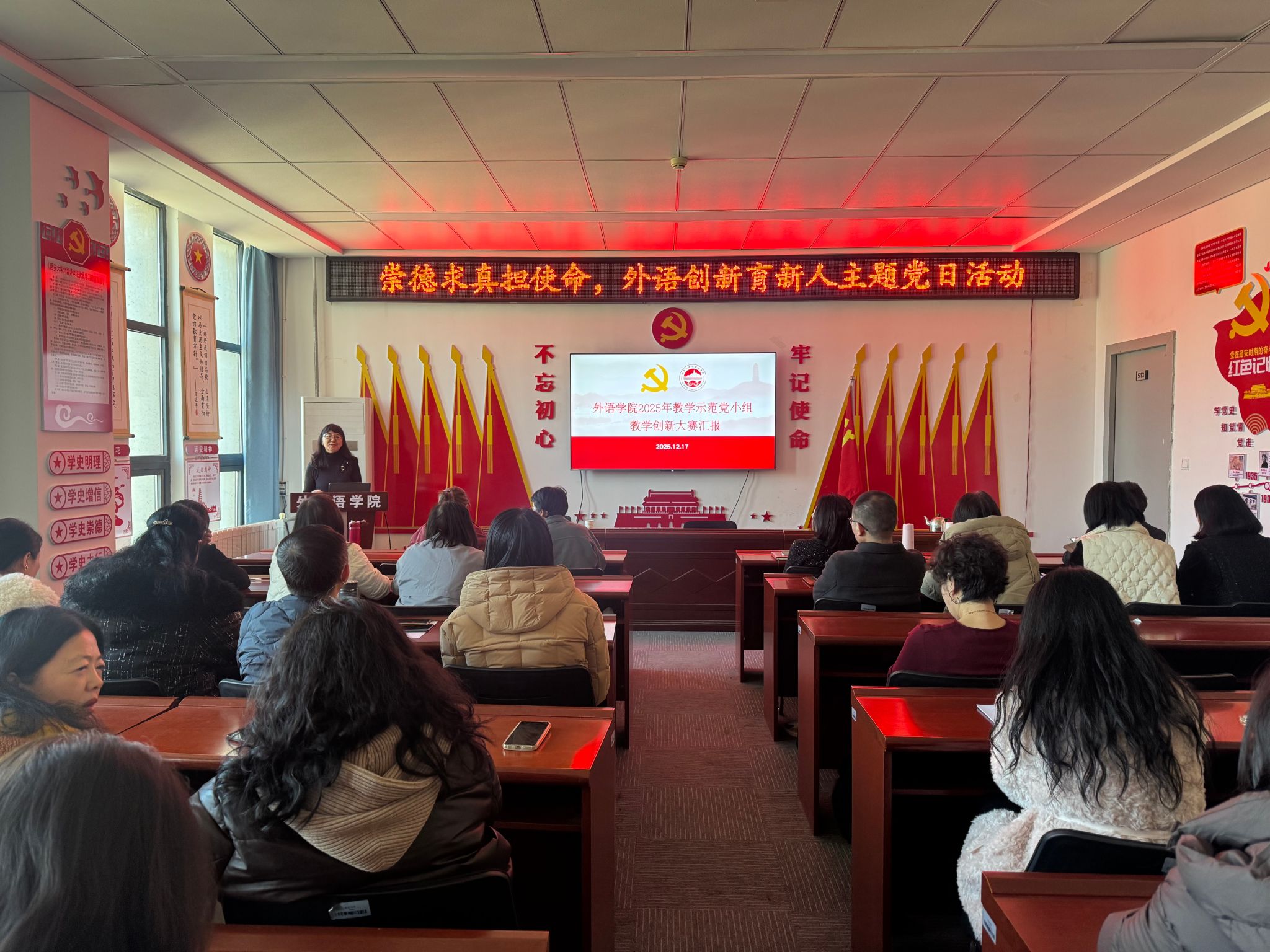 为进一步深化教学改革,提高教师课堂教学水平,12月17日下午,我院在外语楼513党建活动室举办以“崇德求真担使命,教学创新育新人”的主题党日活动,回顾总结2025年教学创新大赛,动员部署2026年教学创新大赛。活动由教学示范党小组牵头组织,教学示范党小组各位成员、教工党支部全体党员参加了本次活动。活动由教学示范党小组组长惠霞副教授主持,院党委书记梁艳出席并讲话。