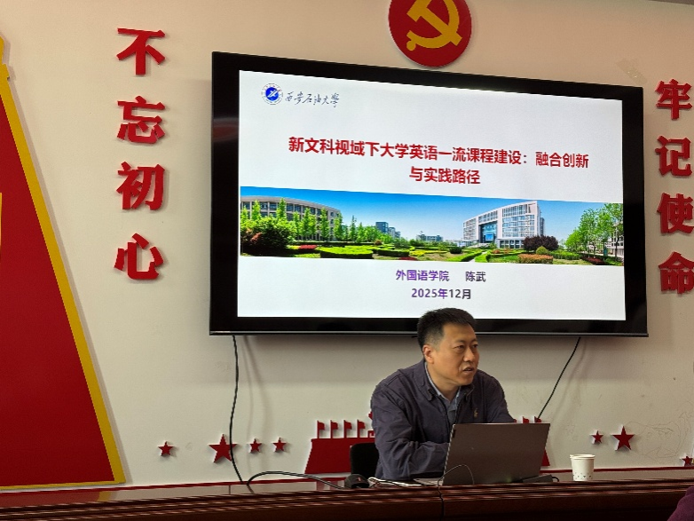 12月2日,外语学院特邀西安石油大学外语学院院长陈武教授为学院大学英语教师作学术报告。陈武教授长期致力于英语教育教学与翻译理论研究,主持多项国家级、省级教学及科研项目,曾获多项教学与科研奖励。