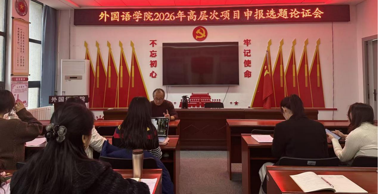 2025年12月22日下午,我院在外语楼513会议室举办2026年高层次科研项目申报选题论证会。会议邀请郭小良教授担任指导专家,由科研副院长王会刚主持,学院20余位拟申报教师参会。