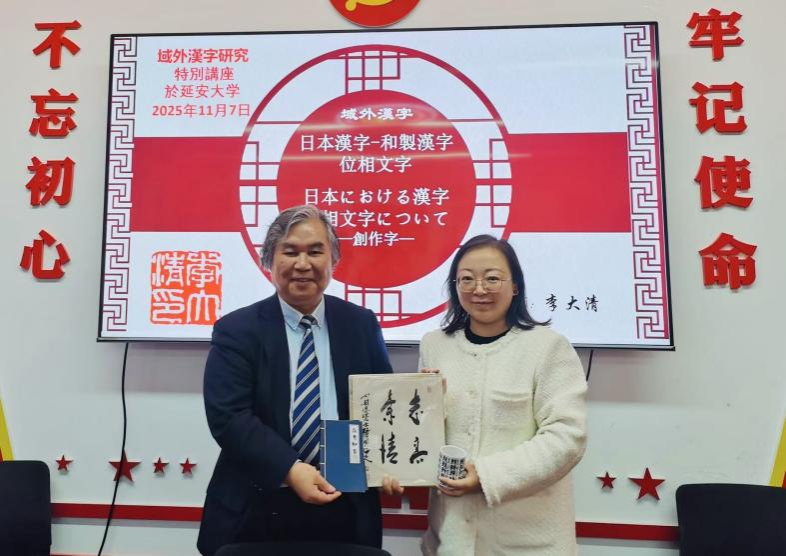 2025年11月7日,湖南师范大学潇湘学者讲座教授、日中和平友好联络会秘书长李大清教授应邀访问延安大学外国语学院,出席第八十九期"克阿讲坛"并作专题学术报告。