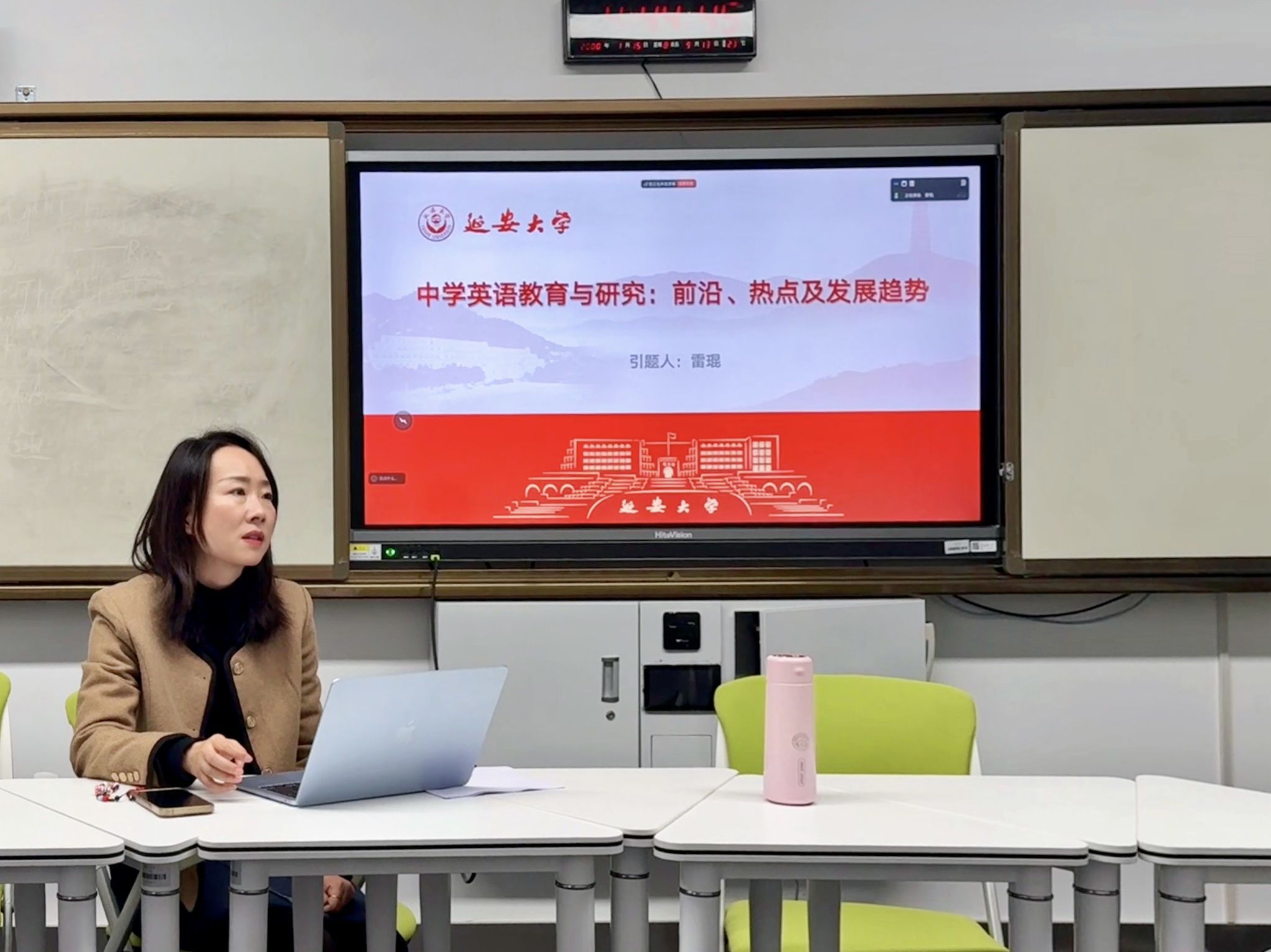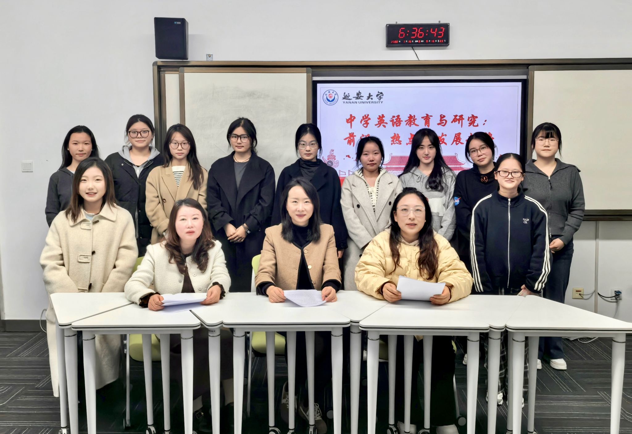 11月5日,延安大学外国语学院成功举办研究生大组会。本次会议由雷琨教授、李宁副教授、呼媛媛副教授及其指导的2024级、2025级研究生共同参与,采用“线下为主、线上为辅”的形式开展。会议内容涵盖中学英语教学研究前沿动态分享、研二学生开题报告预答辩以及研一学生近期学习进展汇报,学术氛围浓厚。
