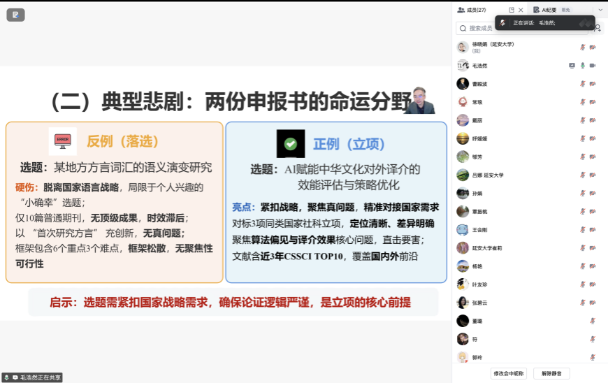 供稿:徐晓娟 审核:王会刚2026年4月9日晚19时至21时30分,我学院通过腾讯会议平台举办了国家社科基金项目申报专题辅导会。会议特邀中国石油大学(华东)外国语学院毛浩然教授担任指导专家,学院副院长常琅教授主持,...