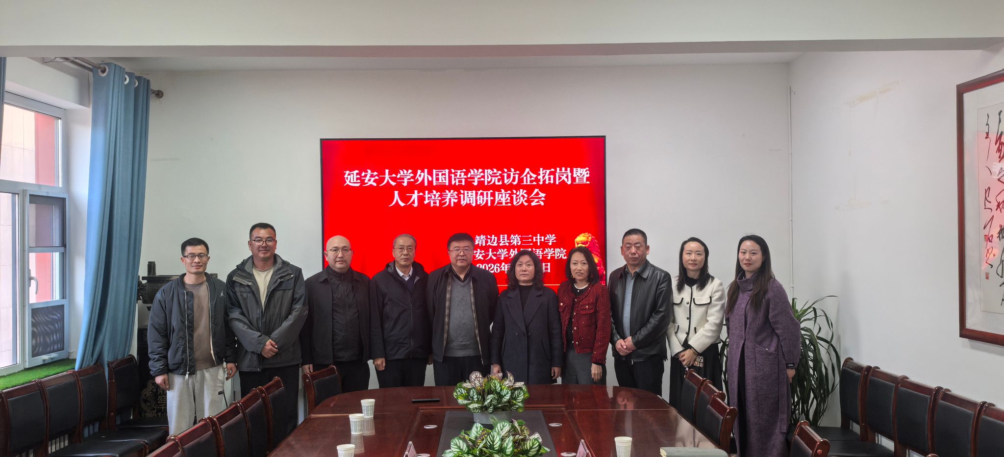 作者:何花 审核:梁艳 为深化校地合作,拓展毕业生就业渠道,精准对接基础教育与职业教育领域人才需求,3月24日,我院党委书记梁艳、副院长常琅、雷琨等一行4人赴靖边县开展访企拓岗促就业专项调研与交流。调研组一行先后走访了靖边县教育和体育局、靖边中学、靖边县职业教育中心及靖边县第三中学,围绕人才需求、实习实践、协同育人、师资培训等议题,与各单位负责人及一线教学骨干进行了深入座谈。在靖边县教育和体育局,双方就当前县域基础教育阶段英语师资的结构性需求、...