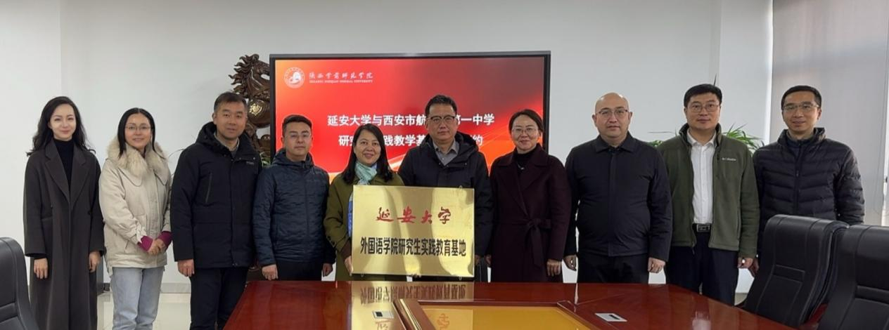 朱敏代表西安航天城第一中学致欢迎辞,期待与延安大学深度合作,将传统实习实践模式转向人才共育、资源共享的全新模式。张向前介绍了延安大学研究生教育基本情况,希望实践基地在业务上悉心指导,工作中严格管理,生活中多关心,促进学生全面成长。随后,常琅、朱敏代表双方签订了实践合作协议,张向前为西安航天城第一中学授牌。