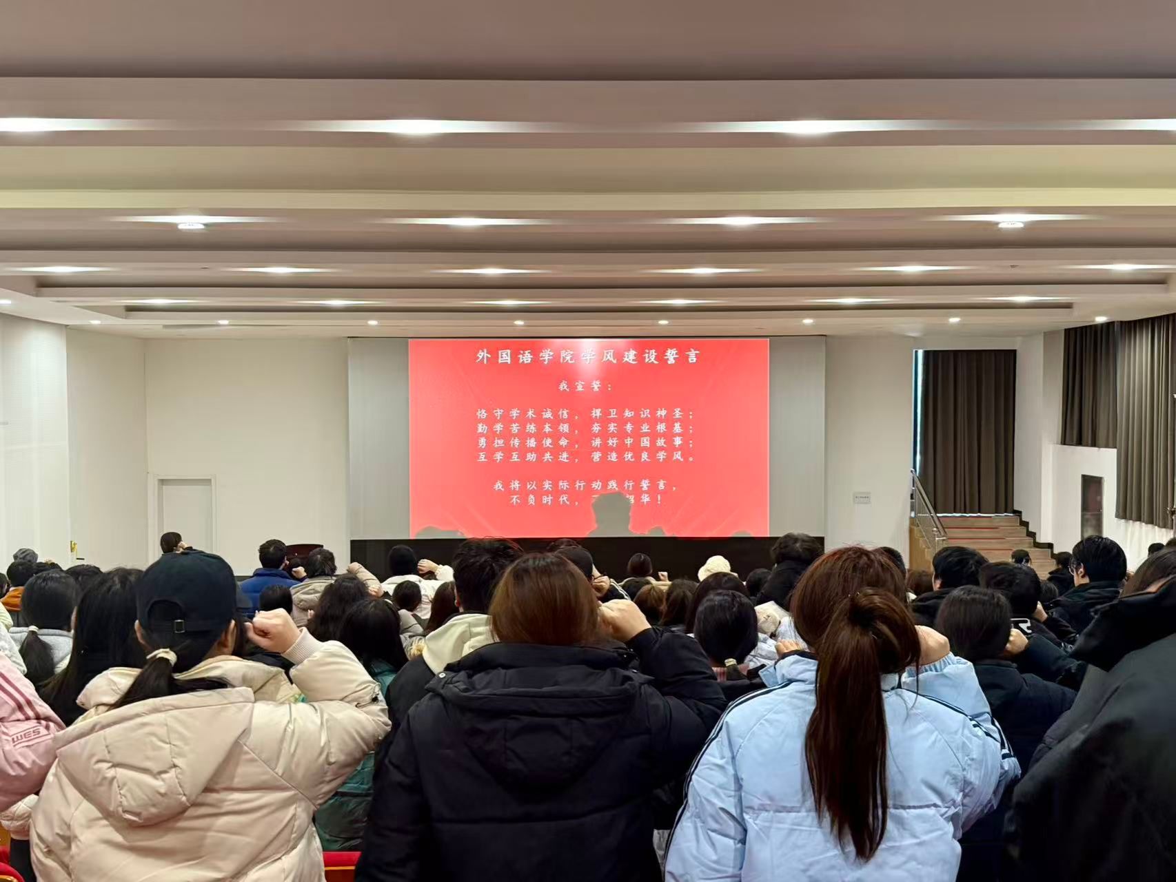 最后,全体学生在领誓人的带领下齐声宣读《外国语学院学风建设誓言》,并签署了《外国语学院学风建设承诺书》。