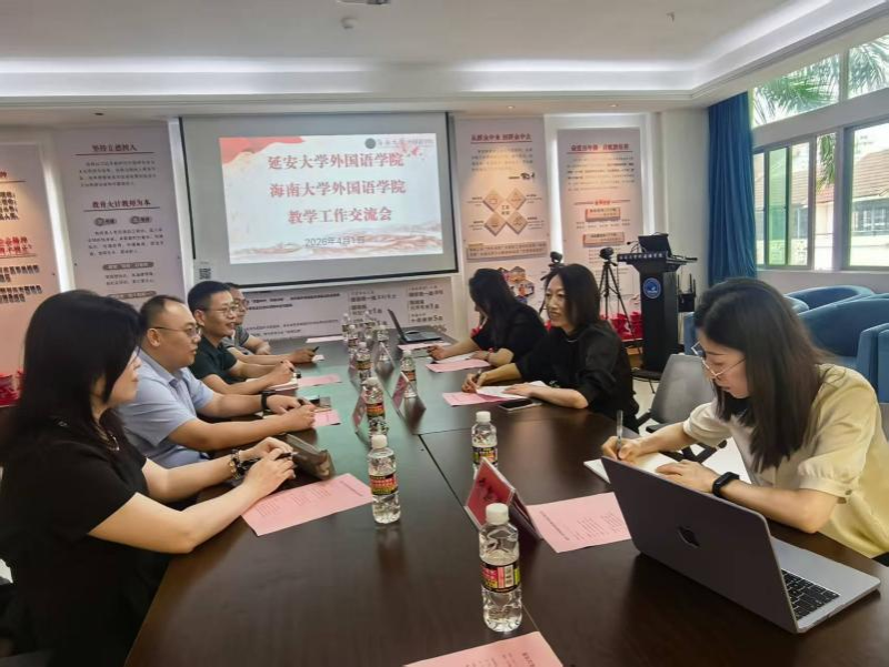 4月1日,调研组走进海南大学开展学习交流。上午,调研组与海南大学外国语学院举行了座谈会。我院党委书记梁艳和海南大学外国语学院党委书记覃成海分别介绍了各自学院在发展历史与现状、专业发展、人才培养等方面的整体情况,之后,双方围绕英语与日语专业课程体系建设、人才培养模式创新、促进学生就业举措、特色党建与标杆院系建设经验等核心内容展开深入探讨与交流。